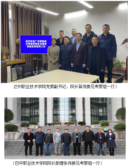 为了巩固提升省优质高职院校建设成果,发挥红色旅游专业群的示范引领作用,加快推进“三个一流”建设。文卫院长一行于11月18日至21日前往南充职业技术学院、四川信息职业技术学院、巴中职业技术学院、达州职业技术学院等进行考察交流。