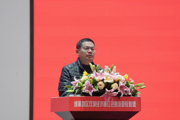 为全面落实中央成渝地区双城经济圈建设战略部署和市委市政府推进成渝双城经济圈建设、创建成渝地区双城经济圈示范市工作部署,加快推进成渝地区双城经济圈建设职业教育协同发展,搭建成渝地区双城经济圈红色旅游发展研究交流平台,12月26日,由学校、重庆旅游职业学院和邓小平故里管理局联合发起的成渝地区双城经济圈红色职教联盟成立大会在广安召开,标志着成渝地区双城经济圈红色旅游职教联盟正式成立。