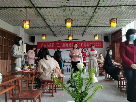 今年是“三八”国际劳动妇女节111周年。为迎接节日的到来,学院在九思楼茶艺实训室承办了“广安市妇联庆祝三.八国际妇女节111周年茶艺体验和调酒品鉴沙龙”活动,各区市县(园区)女职工干部60余名代表参加了此次活动。