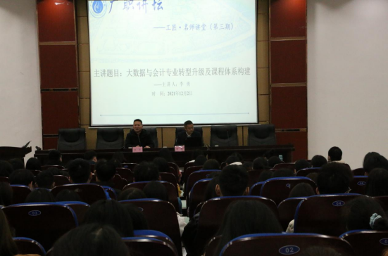 李勇教授在先圣厅为学院师生举办了“大数据与会计专业转型升级及课程体系构建”专题讲座。他从转型升级之因、转型升级之路、转型升级之困、职业素养培育等方面讲述了专业建设、课程体系的演变及成效,对下一步数字经济专业群建设具有借鉴指导意义。