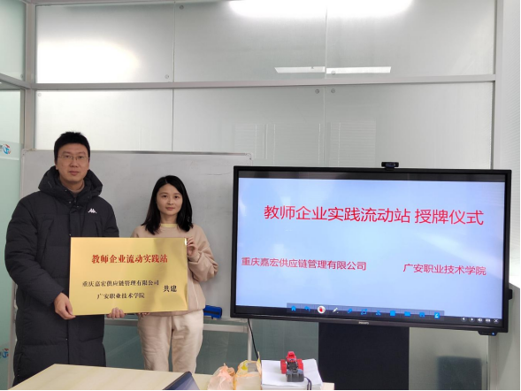 座谈会后,taptap点点官网与重庆嘉宏供应链管理有限公司进行了“教师企业实践流动站”挂牌仪式。学院副院长邓小辉、教务科科长张浩、办公室主任汤凌参加上述活动。