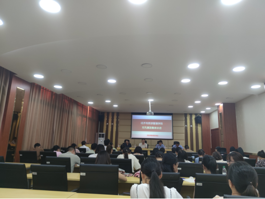 最后,学院党总支书记吴小平开展党风廉政集体谈话。他要求,全院教师员工讲政治、懂规矩、守纪律、强作为、求实效,筑牢拒腐防变思想防线,守住发展底线。