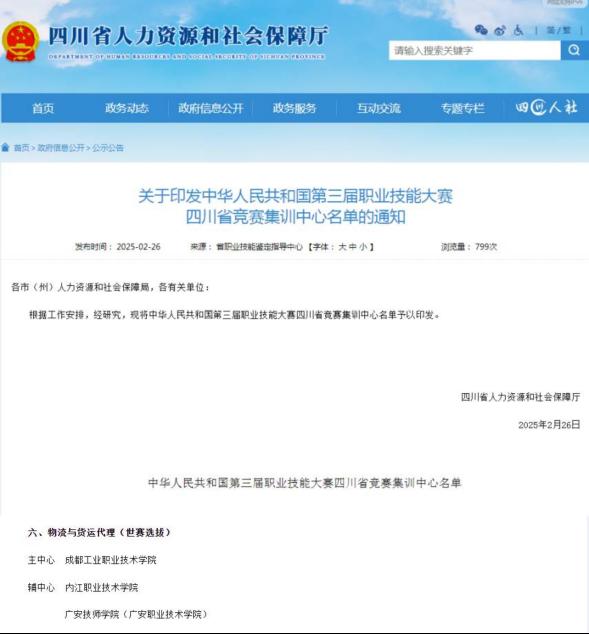 此次获批标志着学院在物流与货运代理领域的高水平教学实力和职业技能培养能力获得省级认可。作为集训中心,学院将依托专业优势,整合优质资源,为参赛选手提供高标准、系统化的技能培训,助力四川省代表队在全国职业技能大赛中争创佳绩。