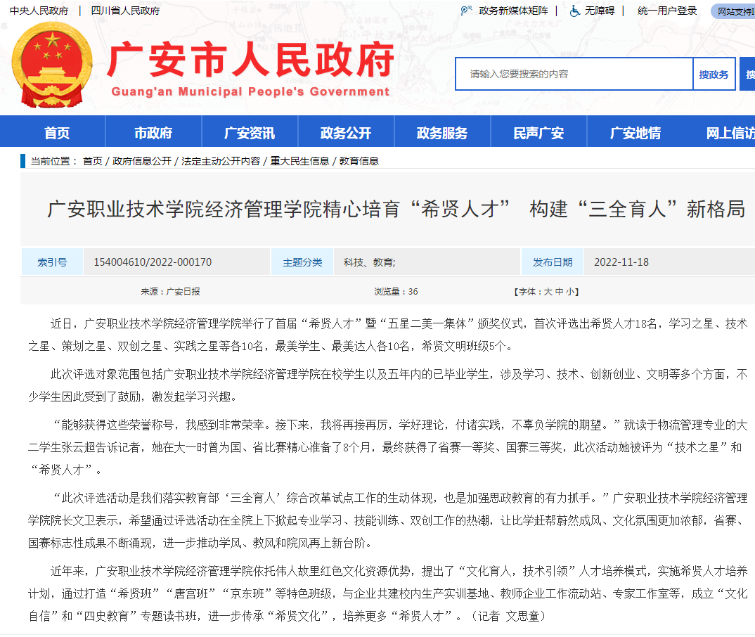 广安市人民政府:taptap点点官方网站经济管理学院精心培育“希贤人才” 构建“三全育人”新格局