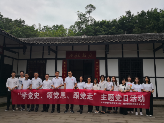 在庆祝中国共产党成立100周年即将到来之际,为了深入推进党史学习教育,真正做到学史明理、学史增信、学史崇德、学史力行,激励共产党员从革命先烈的事迹中汲取奋进的力量,在全院党员中掀起学习老一辈无产阶级先辈的先进事迹。5月29日至5月30日,经济管理学院党总支组织教师支部和学生支部共20余名党员,赴自贡市吴玉章故居、江姐故居开展“学党史 颂党恩 跟党走”主题党日活动。