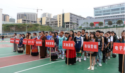开幕式在庄严的国歌声中拉开帷幕,身着少数民族服饰的同学引领8支参赛队伍迈着整齐的步伐入场,既展示了民族的团结精神,又充满了朝气与活力。喻忠书记发表了热情洋溢的致辞,他指出篮球运动是展示青春活力的运动,是展示团队精神和篮球元素优化组合的运动,是竞技加拼搏、比赛加友谊、激情加汗水的 运动,希望同学们秉承“团结第一、友谊第一、安全第一、比赛第二”的比赛精神,赛出风格,赛出水平!