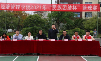 2021年5月7日下午,经济管理学院“民族团结杯”篮球比赛开幕式在学校篮球场举行。学院院长文卫,党总支书记喻忠,党总支副书记郭智伟,副院长谭燕出席开幕式,学生科管理科老师,8支参赛队及团学联学生干部共计200余人参加开幕式。