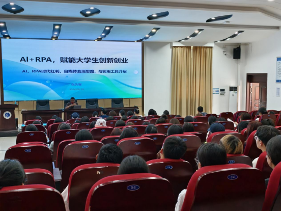 本次讲座不仅拓宽了大学生对AI+RPA技术的认知边界,为大学生创新创业提供了新思路与技术支持,有效激发了青年学生的创新创业热情,奋力为科技强国建设贡献青春力量,同时促进教师们进一步聚焦新质生产力发展布局推动服务高质量发展