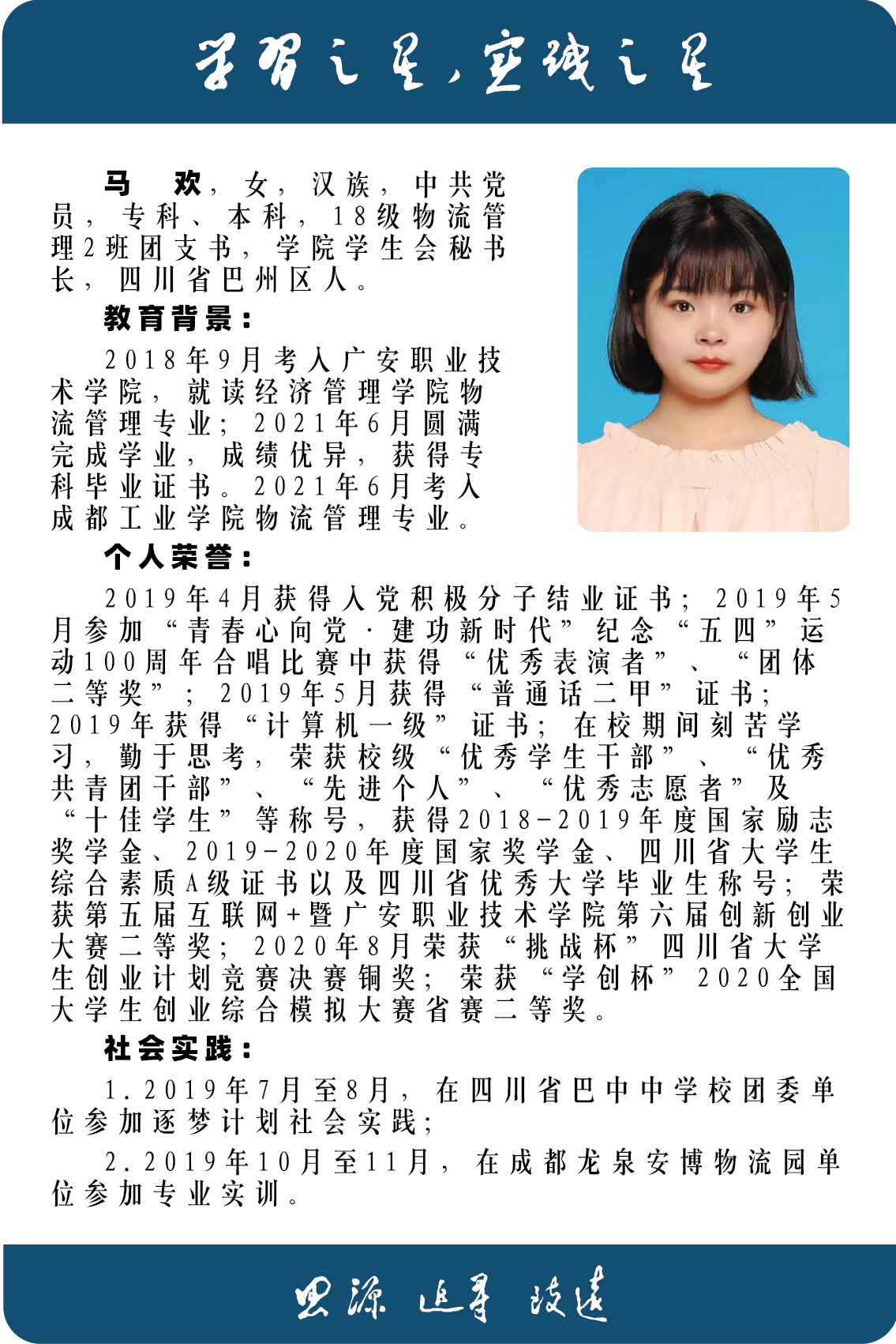 2018级优秀毕业生——马欢