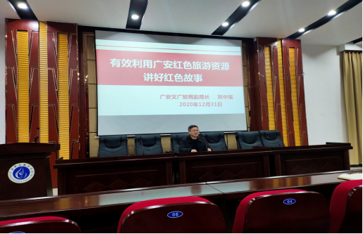 在成渝地区双城经济圈红色旅游职教联盟成立大会刚刚落下帷幕之际,12月31日下午,taptap点点官网旅游管理专业客座教授、市红色旅游专家,广安市文化广播电视和旅游局党组成员、副局长贺中福应邀举办红色旅游专题讲座。讲座活动仪式由学院副院长谭燕主持。
